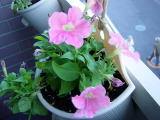 こんな暑さの中でもベランダのペチュニアはきれいな花を咲かせています。