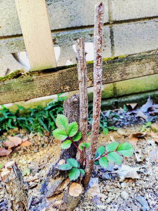 テディベアという名前のつるバラが昨年枯れてしまって、根元の茎と根っこだけが残っていました。
